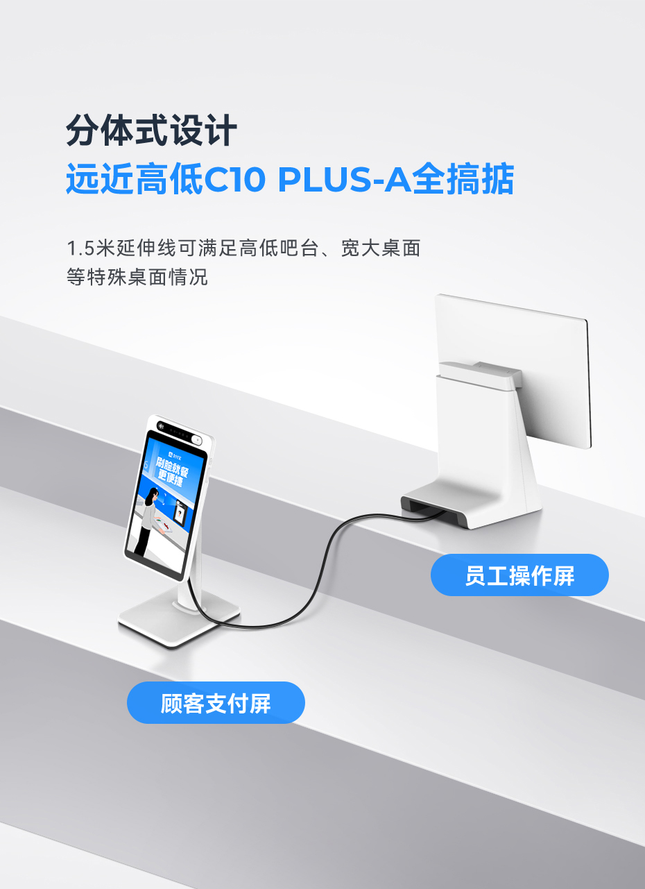天波台式收银机C10 Plus拥有一体分体两种版本,满足不同食堂使用场景的需求